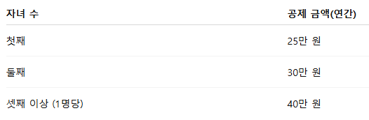특히 2025년부터 공제 금액이 인상되면서, 다자녀 가구의 세 부담 완화 효과가 더욱 커진 것이 특징입니다.